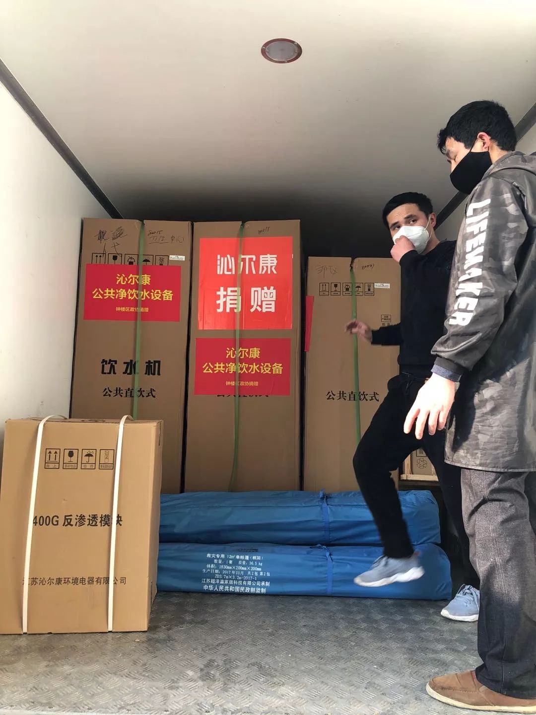2月8日(rì),沁爾康運維部的售後工(gōng)程師(shī)在充分(fēn)做好防護措施的前提下,逐個斟察了10家受贈單位的安裝場所,并根據現場實際狀況做出了設備和安裝方案。2月9日(rì)上午,10套淨水設備随鍾樓區政協慰問(wèn)物資一道,送到了每個受贈點。