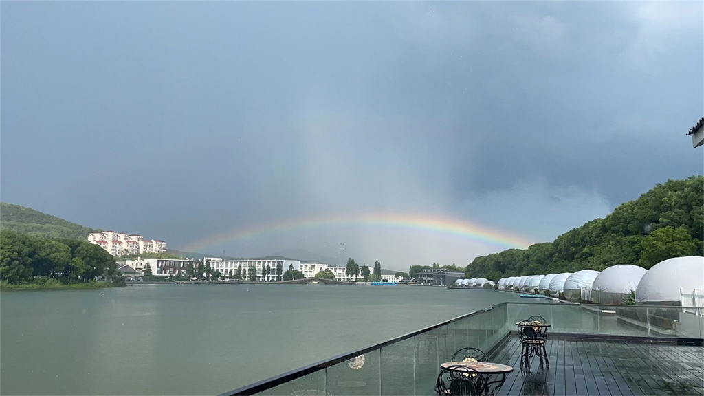 随後,衆人(rén)來(lái)到竺山(shān)湖小鎮進行龍舟競渡體(tǐ)驗。盡管剛下了一場暴雨(yǔ),大(dà)家的熱(rè)情依然高漲,紛紛上船(chuán)一展身(shēn)手。鼓手、槳手各就(jiù)各位,兩艘龍舟迎風(fēng)而發,此前大(dà)夥都(dōu)沒有劃船(chuán)的經驗,憑的就(jiù)是對彼此的信任和對自(zì)我的堅持。行到途中,新的大(dà)雨(yǔ)倏然而至,兩艘龍舟頂風(fēng)冒雨(yǔ)奮力向前,不分(fēn)先後。經過數十分(fēn)鍾的努力,大(dà)家終于都(dōu)回到了岸上,此刻雨(yǔ)停風(fēng)起,沁人(rén)心脾,不論“輸赢”,所有人(rén)都(dōu)是勝者!而适時“偶遇”的彩虹,正是對奮鬥者獎賞。